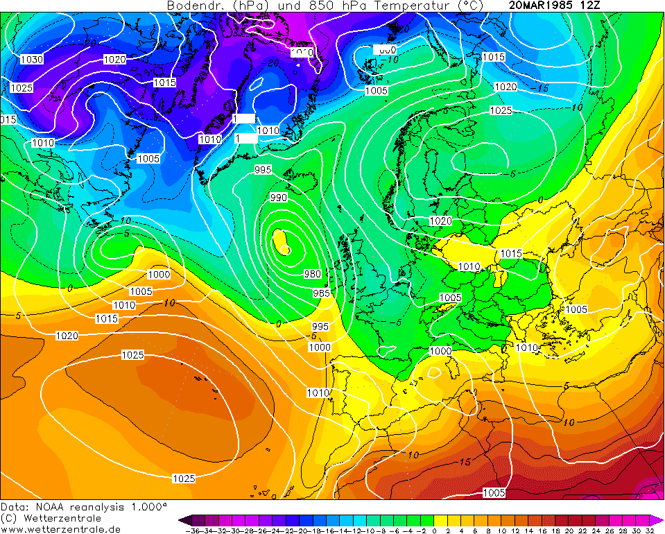 Neige et froid - Analyse météo du 20 mars 1985