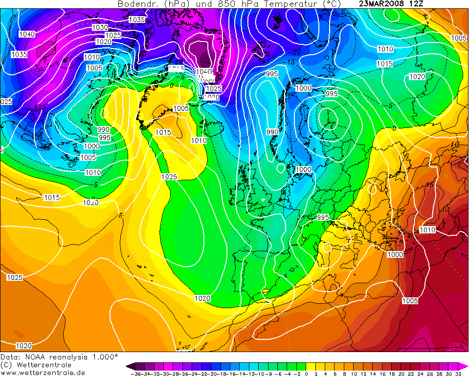 Neige et froid - Analyse météo du 23 mars 2008