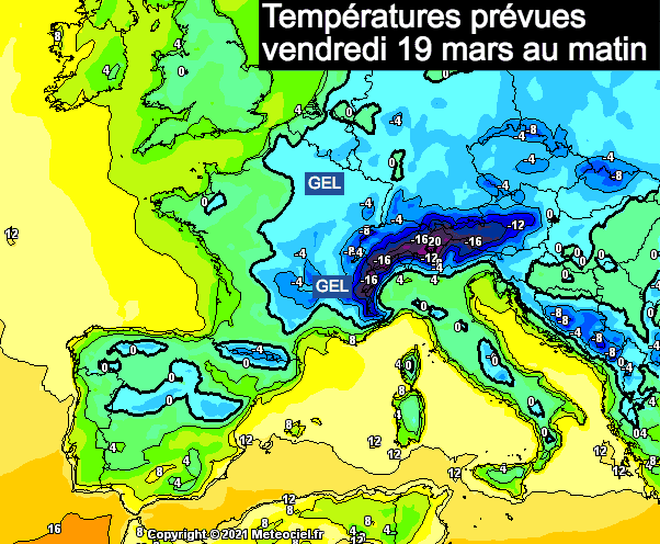 A partir du 19 mars 1906, le froid envahit toute la France. Le 21 mars 1906 : les averses de neige sont fréquentes un peu partout.  Les 24 et 25 mars 1906 : des gelées très tardives causent d’énormes dégâts près de la Méditerranée. Température minimale de -5° à Nice. Cette véritable "vague de froid" ne se terminera qu'au début du mois d'avril 1906 !