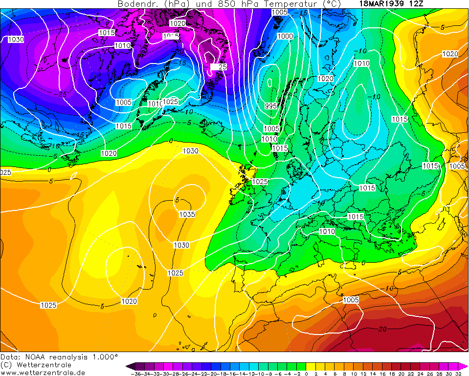 Neige et froid - Analyse météo du 18 mars 1939