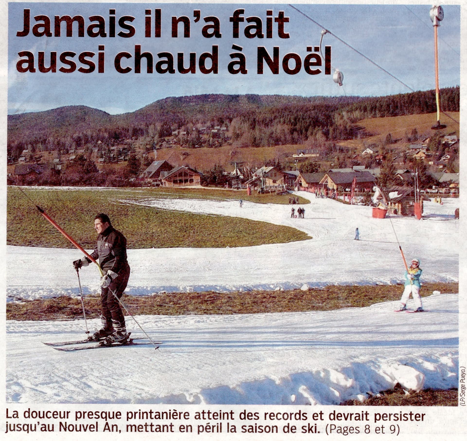 Autre conséquence de cette grande douceur et de ce temps calme, l'absence notable de neige en montagne avec des enneigements très déficitaires en montagne, une neige qui se faisait même quasiment absente sur certains secteurs.