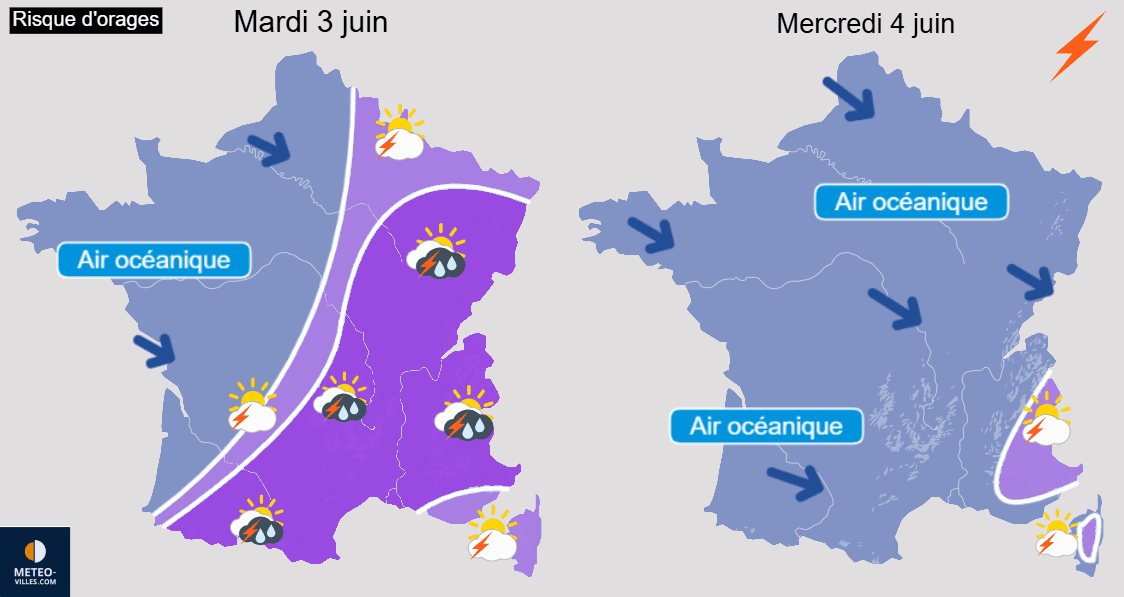 Risques orageux sur la France pour les journées de mardi 3 et mercredi 4 juin 2025 – Météo-Villes