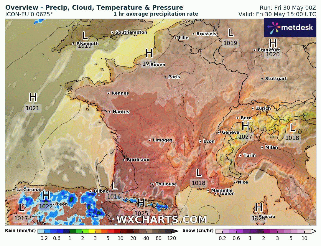 Situation atmosphérique du dimanche 1er juin 2025 – Modèle GFS via WX CHARTS