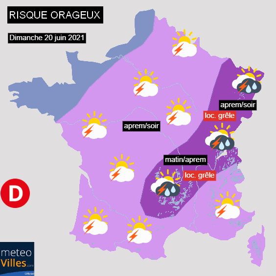 Prévision du risque orageux pour la journée du dimanche 20 juin 2021 - Météo Villes