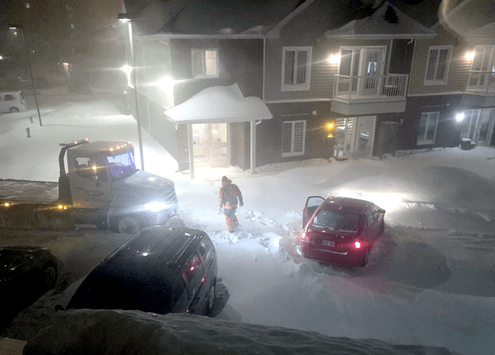 Un peu plus au nord, c'est la neige qui a dominé les débats. Il est tombé entre 15 et 20 cm de neige entre Saguenay et Chicoutimi avec un vent formant des congères. Les cumuls de neige ont été un peu moins importants que prévu puisque certaines modélisations allaient jusqu'à plus de 30 cm. Pour la région, c'est une tempête de neige classique comme il s'en produit plusieurs fois chaque hiver.