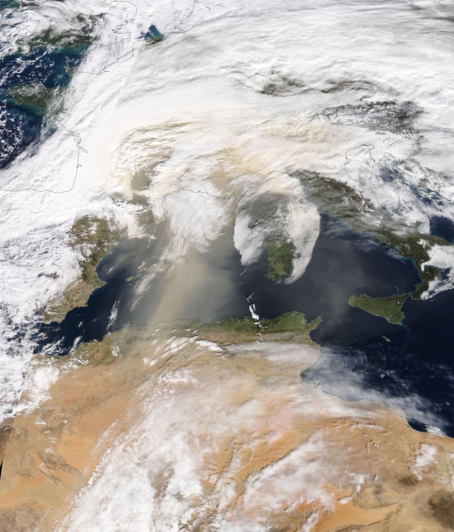 Remontée de sable Saharien vers la France - 6 février 2021 - Satellite Terra / NASA