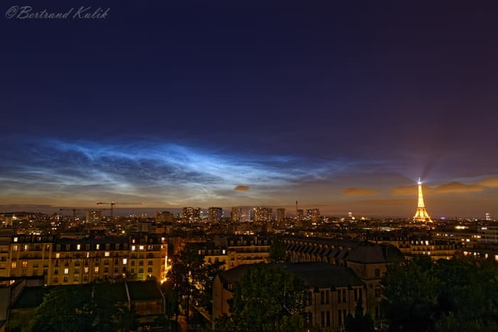 Nuages noctulescents visibles dans le ciel de Paris le 18 juin 2021 - photo Bertrand Kulik