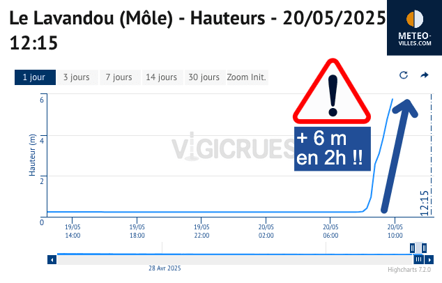 Crue majeure de la Môle au Lavandou (83) ce matin du mardi 20 mai 2025 - via Vigicrues