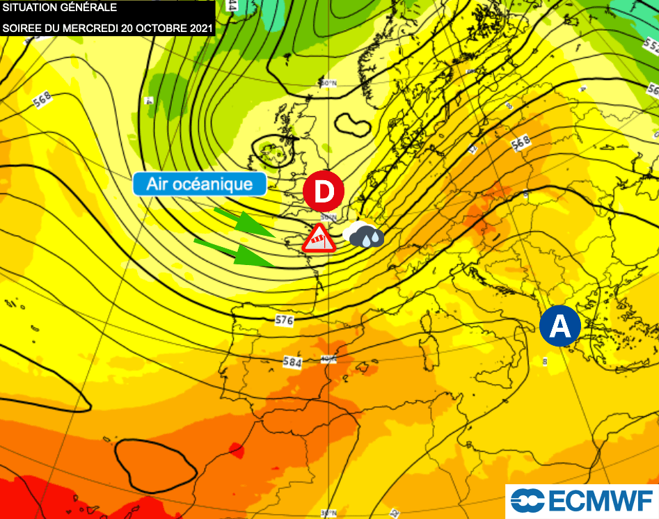 Situation générale prévue - soirée du mercredi 20 octobre 2021 - ECMWF