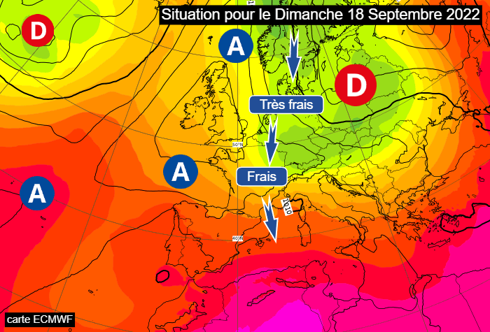 Situation à échelle continentale ce dimanche 18 septembre 2022 - carte ECMWF