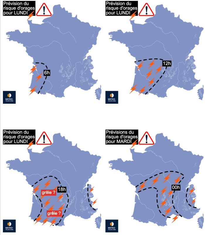 Après plusieurs jours de temps plutôt calme, les orages reviennent en ce début de semaine. Ils éclateront essentiellement sur la moitié Sud de la France, et notamment dans la soirée de lundi. Un passage en vigilance orange est envisagé lundi sur plusieurs départements d'Occitanie et de Nouvelle-Aquitaine car il s'agira du premier épisode orageux "organisé", intense, de ce printemps 2025.