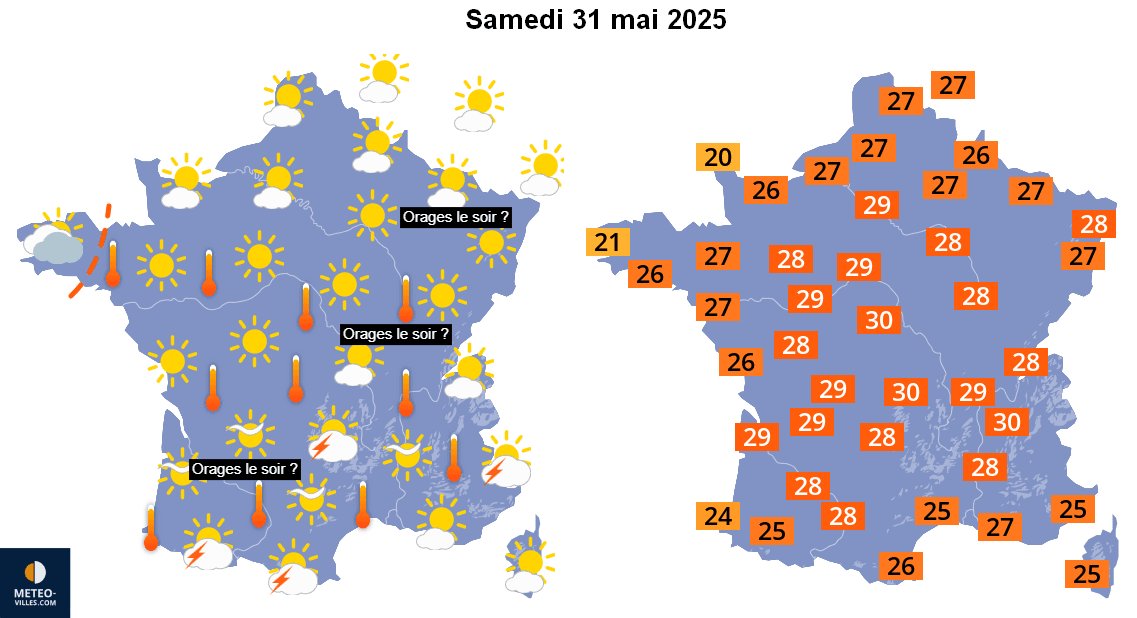 Météo et températures maximales pour le samedi 31 mai 2025 – Météo-Villes