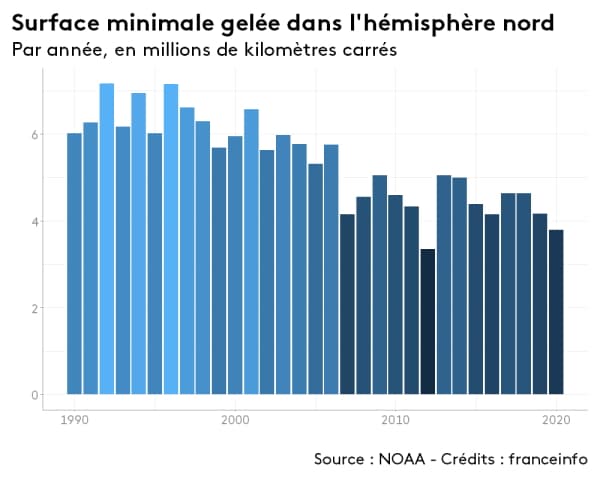Surface minimale des glaces de l'hémisphère nord depuis 1990 - via France Info