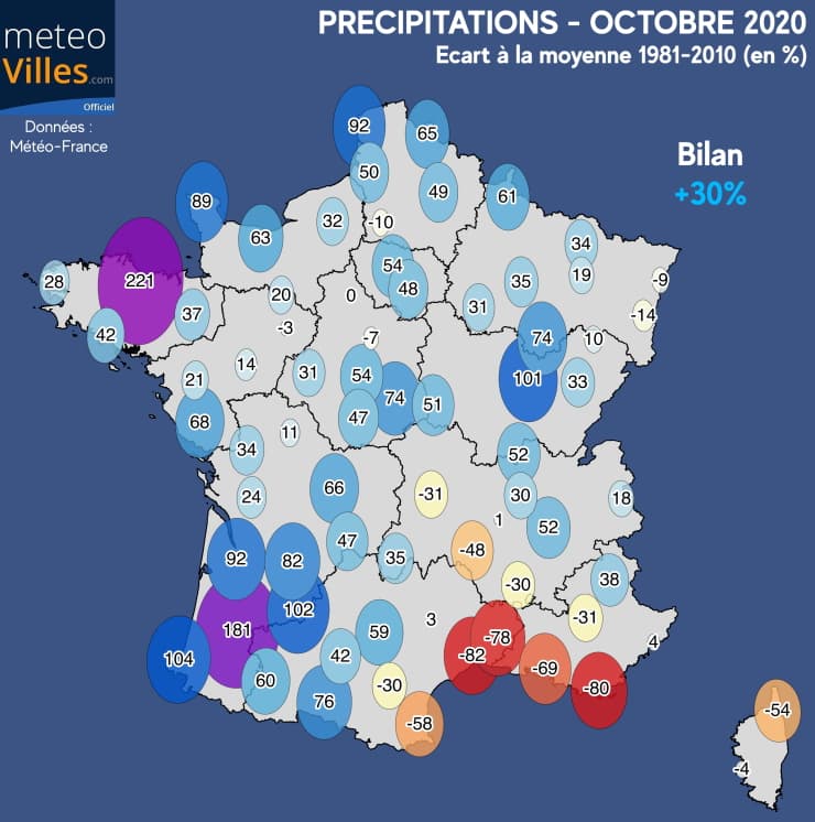 Anomalies de précipitations en octobre 2020 - Météo Villes
