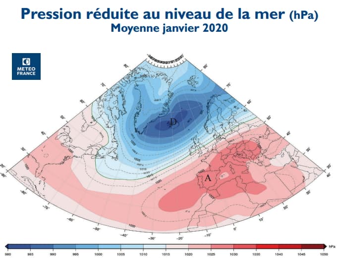 Pression moyenne au cours du mois de janvier 2020 - via Météo France