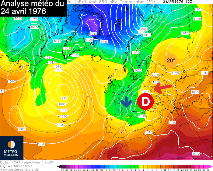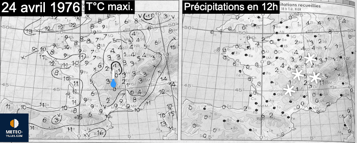 Les 23 et 24 avril 1976, l'hiver fait son retour sur la France avec l'arrivée d'une masse d'air froide et humide englobant une partie de l'Ouest de l'Europe.
