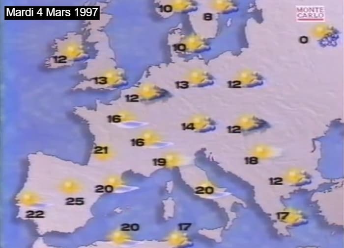Prévisions météo en Europe pour le mardi 4 mars 1997 - archives TV Monte Carlo