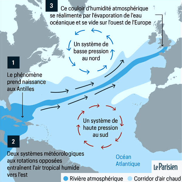 Schéma d'une rivière atmosphérique sur l'Atlantique - via Le Parisien