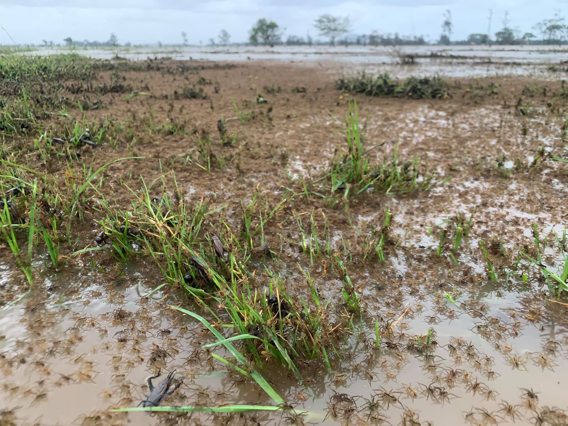 Plusieurs milliers d’araignées et d’insectes tentent d’échapper aux inondations à Kinchela Creek ce week-end – Photographie : Matt Lovenfosse