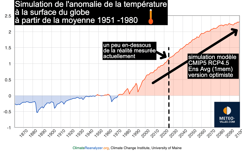 La simulation la plus optimiste qui avait été réalisé, il y a quelques années était trop optimiste, de quelques dixièmes de degré pour 2024.