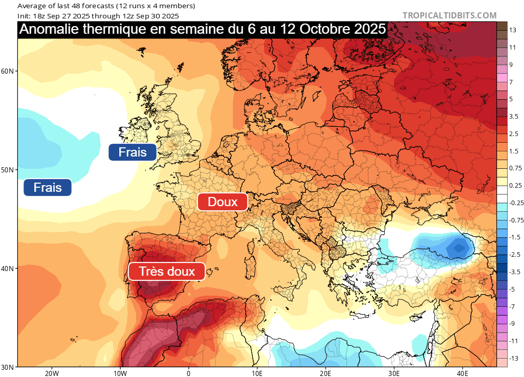 Anomalie thermique envisagée en semaine du lundi 6 au dimanche 12 octobre 2025 - Météo Villes