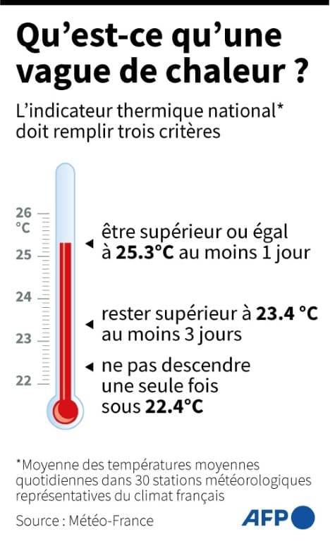 Critères retenus pour définir une vague de chaleur selon Météo-France – AFP