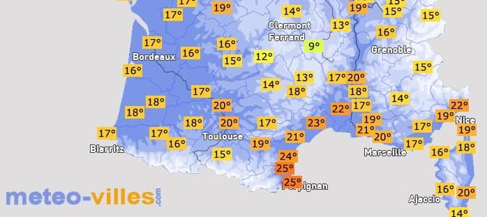 Les températures les plus élevées de la journée ont été mesurées entre le Roussillon et l'Hérault. Il a fait jusqu'à 37,3°C à Narbonne dans l'Aude, 37,2°C à Céret dans les Pyrénées-Orientales ou encore 36,9°C à Saumont dans l'Hérault. À Perpignan, la maximale fut de 35,4°C - signant un troisième après-midi consécutif à plus de 35°C !