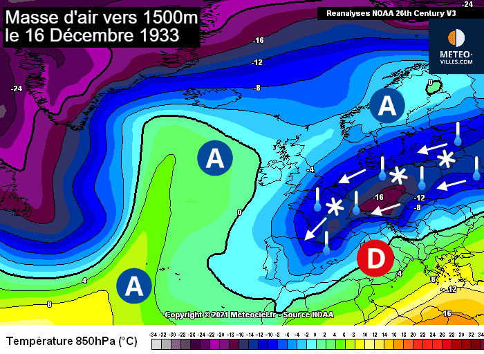La période la plus glaciale survient au cours de la deuxième décade. Le 12 décembre, la température descend à –9,7 °C au lever du jour à Paris, et ne dépasse pas –4,5 °C l’après-midi. La capitale enchaîne même 14 jours consécutifs sans dégel, un chiffre exceptionnel. Rapporté aux normales climatiques actuelles, décembre 1933 afficherait un déficit de plus de 7 °C !