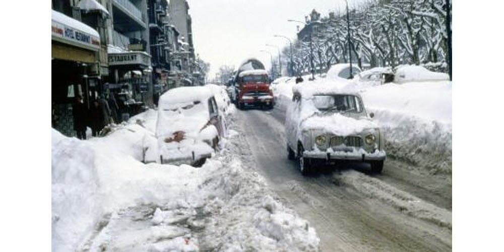 A partir du 22 décembre 1962, un froid polaire déferle sur toute l’Europe par le Nord-Est. Les gelées sont permanentes sur absolument toute la France et le réveillon de Noël 1962 est le plus froid du 20eme siècle avec par exemple -15°C à Bordeaux ou encore -9°C à Biarritz. Quasiment toute la France est paralysée par le froid et la neige avec plus de 20cm à Marseille, 50cm à Perpignan, jusqu’à plus d’un mètre à Barcelone !