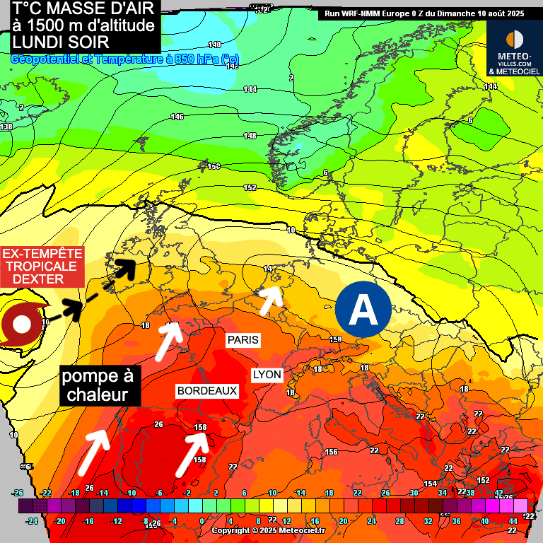 On doit cette situation remarquable à la présence d’une chaleur saharienne intense depuis plus d'une semaine sur toute la partie Sud de l’Europe, conjuguée à l’arrivée de cet ex-tempête tropicale Dexter sur le proche - Atlantique.