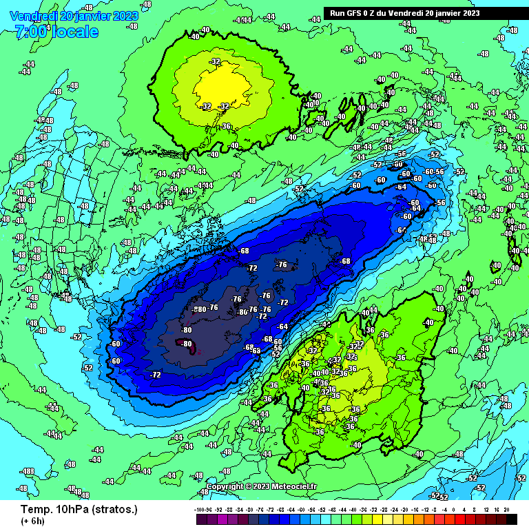 Animation du réchauffement stratosphérique de cette fin janvier 2023 - via meteociel.fr
