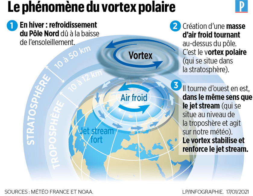 Schéma expliquant le phénomène du vortex polaire - infographie Le Parisien