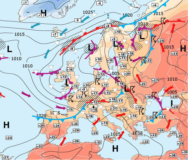 + Malgré une fiabilité des prévisions encore assez limitée, le week-end de la Pentecôte devrait être assez nuageux et instable.
