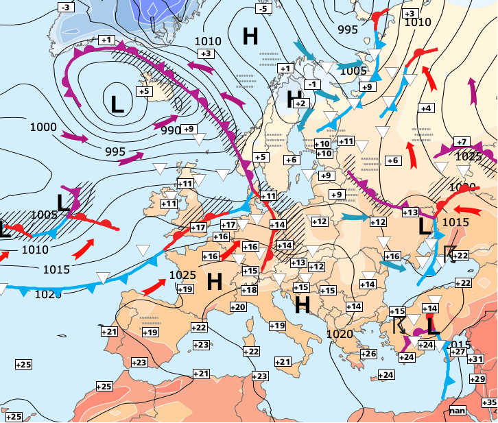 + Ce temps instable avec un risque d’averses et des températures plus basses concernera presque toute la France dans la journée de mardi, puis l’anticyclone se rétablira sur le Nord de l’Europe avec un courant de nord-est plus sec mais toujours frais pour mercredi.